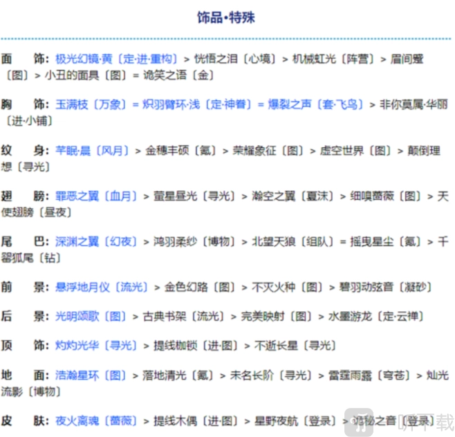 顶饰: 灼灼光华[寻光] >提线枷锁[进图] >不逝长星[寻光]