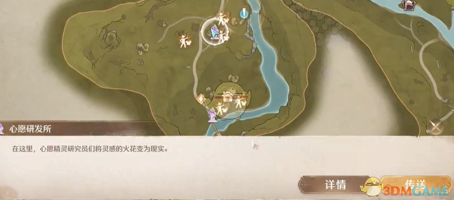1. 点击任务追踪,接着打开地图,选择前往祈愿树林的心愿研发所。到达之后,转身朝后方走去。