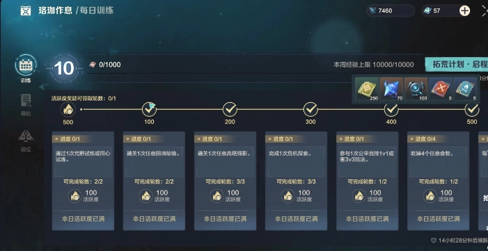 明确任务解锁条件后,升级便成了重中之重。若想快速升至20级,其实有不少升级途径,比如选择珞珈训练。玩家点击进入后,完成其中的活跃任务,每累计100点活跃值,就能获取250点阅历经验,如此算来,至少能有1200多点阅历经验。