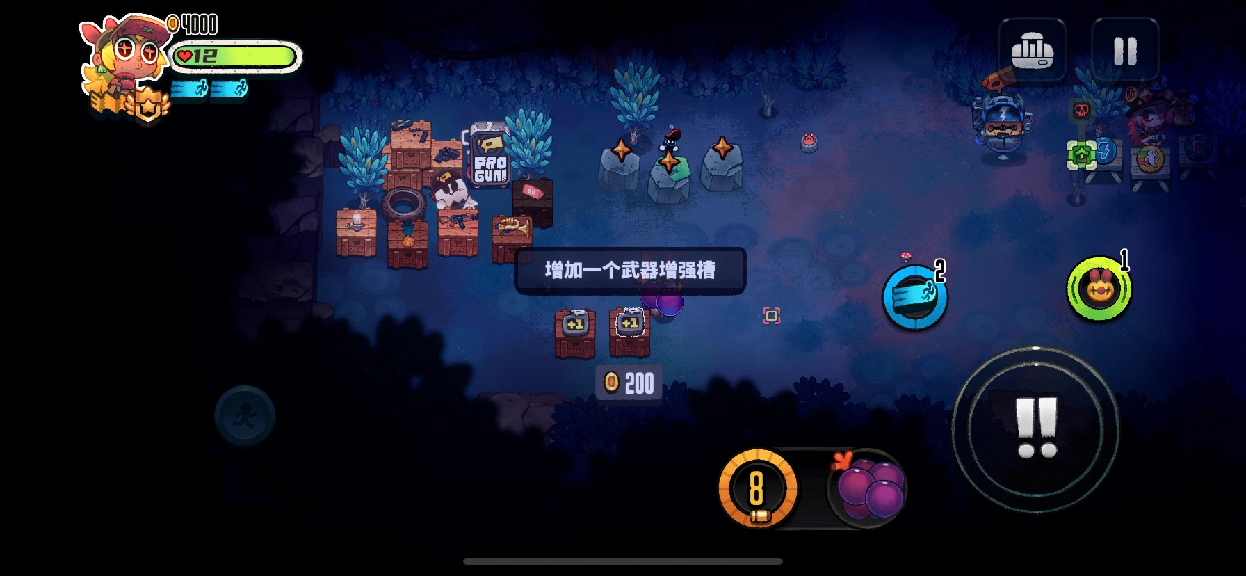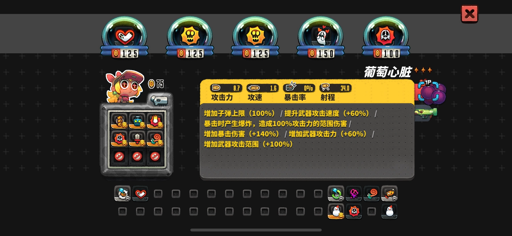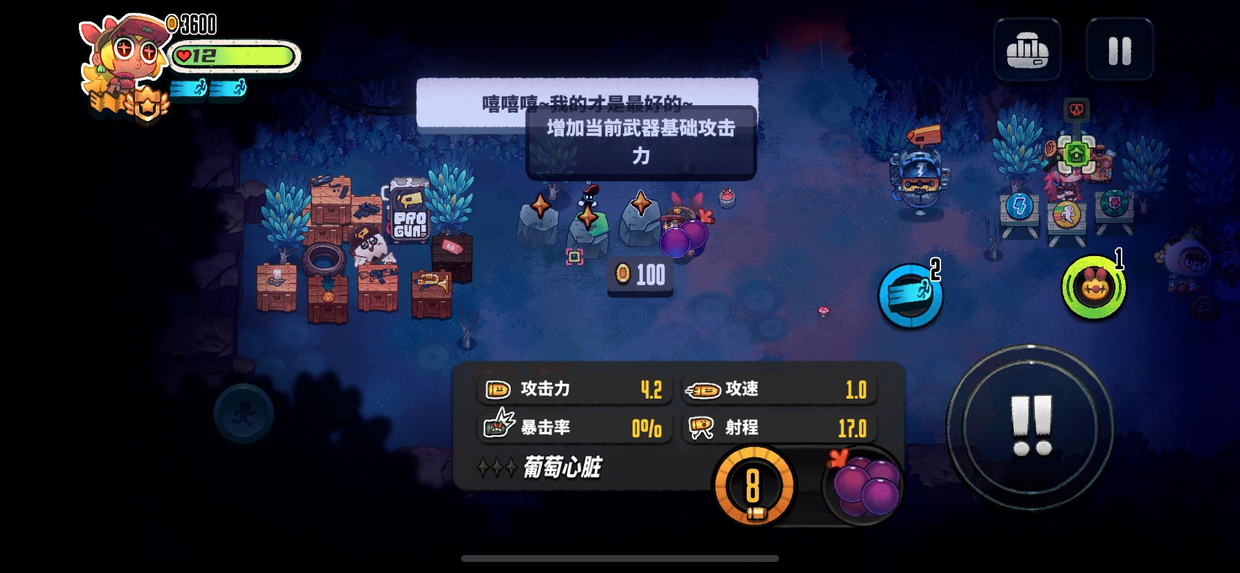 首先进入游戏后,先挑选武器,建议购买消耗果核的武器,除了仙人掌枪外,其余武器都相当厉害。接着,依据你所购入武器的星级,购买星星来提升基础攻击力。