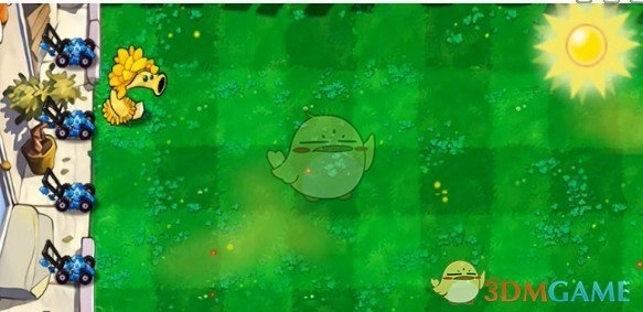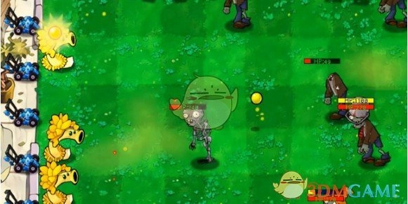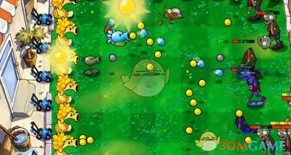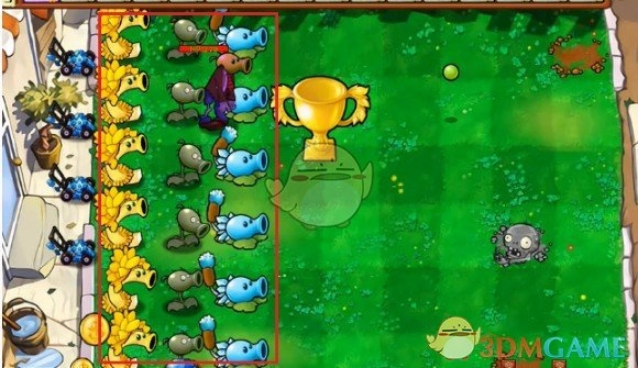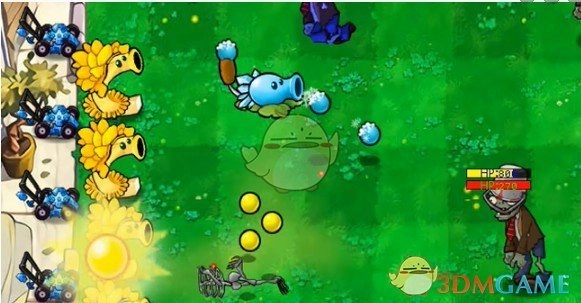 6、在僵尸豌豆射手的正前方放置一个寒冰香蒲。