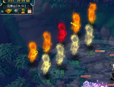9、来到花果山,击败【妖火】,需要打两次,难度也很简单;