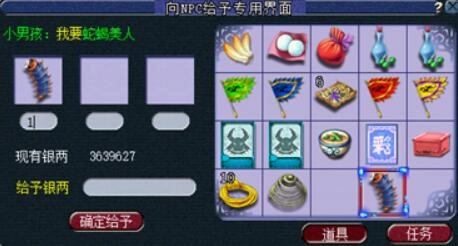 4、直接给他指定的三种药,给完之后传送到大唐国境(230,17)。