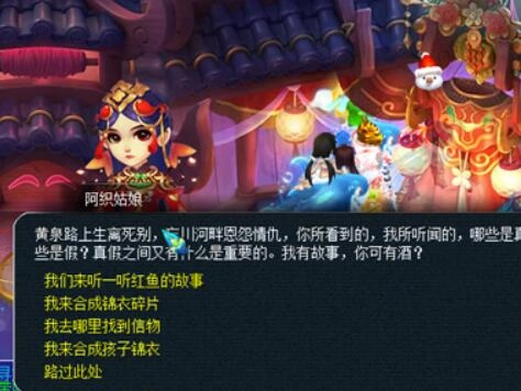 2、接着把该道具放置在道具栏,于鬼市与【阿织姑娘】对话,选择【来听一听红鱼的故事】,从而进入副本。