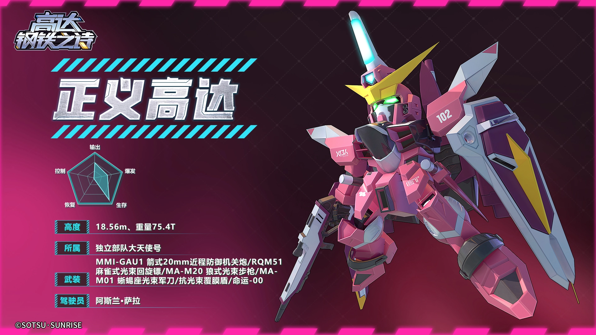 在战斗过程中,正义高达具备分析敌方攻击动作并予以回应的能力。当遭受护甲比自身低的目标发起攻击时,它会提升自身1%的技能伤害与1%的攻击力,此效果最多可叠加10层。