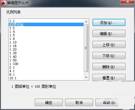 5、回到【编辑图形比例】对话框,选中新增的比例值,点击“确定”按钮即可。