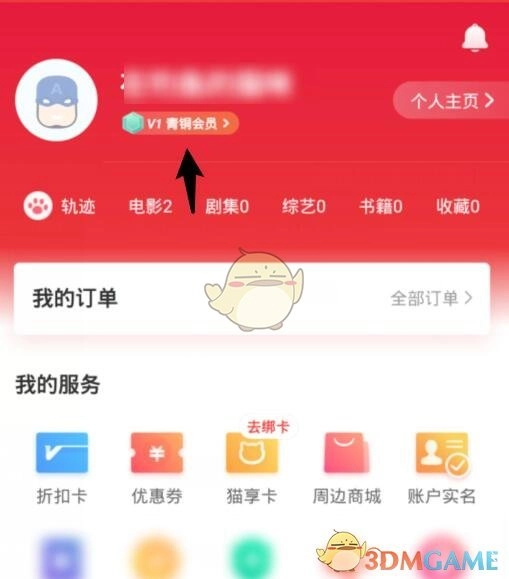1. 开启猫眼应用,轻点右下角的【我的】选项,接着选取头像旁的会员等级。