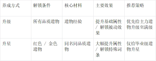 3. 升星误区:红色遗物1星就能使用,2星及以上则要考量材料性价比(特别是非主力武将)。
