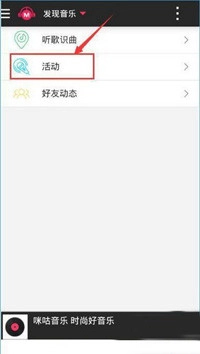 2. 在发现音乐的界面里,点击活动。
