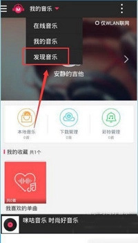 1. 在咪咕音乐的首页,点击“我的音乐”,接着选择“发现音乐”。