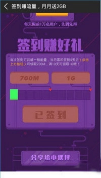 3、于活动页面内寻得“签到赚流量,月月送2G”这一活动。