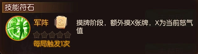 【军阵】是一种稳定的摸牌符石,与【灵渊】搭配时,每回合至少能让王异多摸2张牌,具备相当不错的摸牌下限。