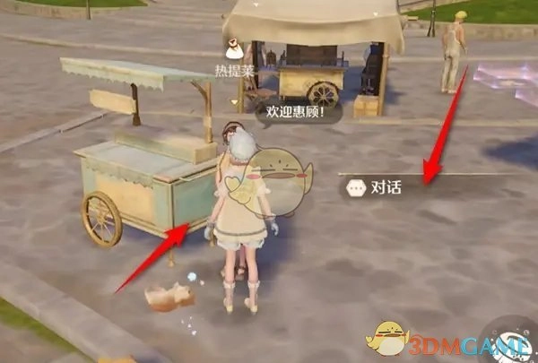 3、前往热提菜的动物材料店,在店内找到兔尾绒团并购买。