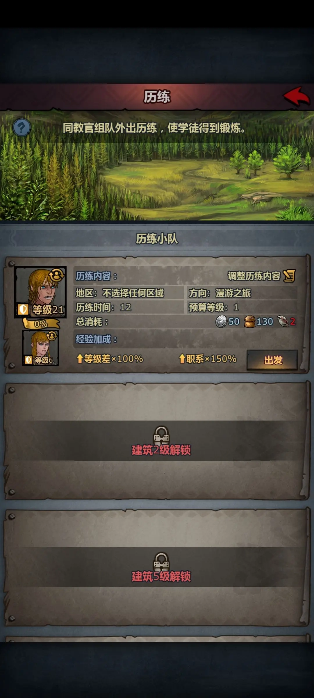 第二章开启可配置的军团技能系统,玩家可依据队伍的具体构成挑选适配的增益效果。在酒馆招募到教师角色后,建议尽快安排其入职任教;等级达到21级及以上的角色,能够带领队伍开展历练活动,这是游戏前期获取经验值与各类资源的高效方式。