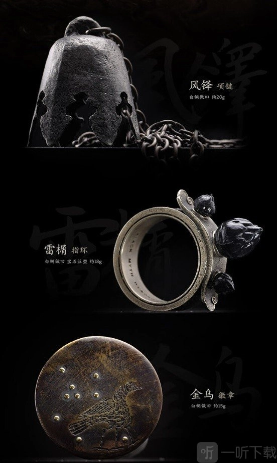 首饰三件套:风铎项链、雷榍戒指、金乌徽章