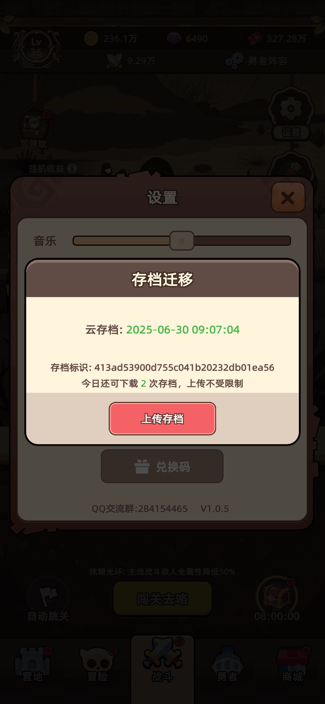勇者不能停为玩家推出了云存档功能,便于玩家在更换设备时进行存档迁移。在游戏内,点击【设置】-【上传存档】,即可进入存档迁移页面。进入该页面后,只会看到【上传存档】按钮,玩家可在此处上传本地存档,使其成为云存档。