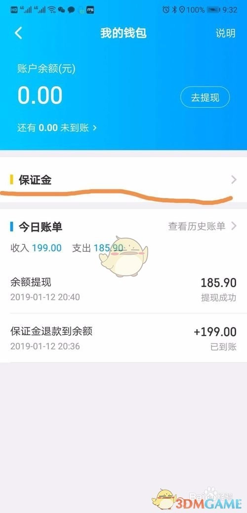3、在此处能够对余额进行提现操作,点击“保证金”。