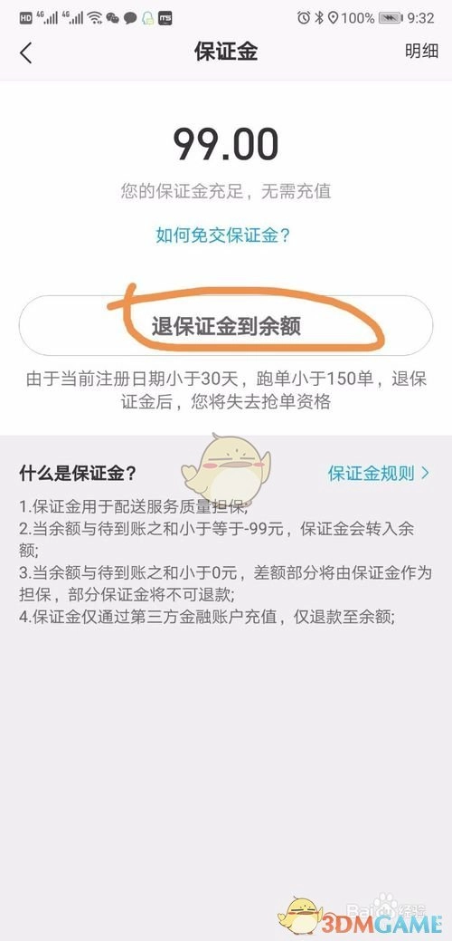 4、点击“将保证金退回至余额”
