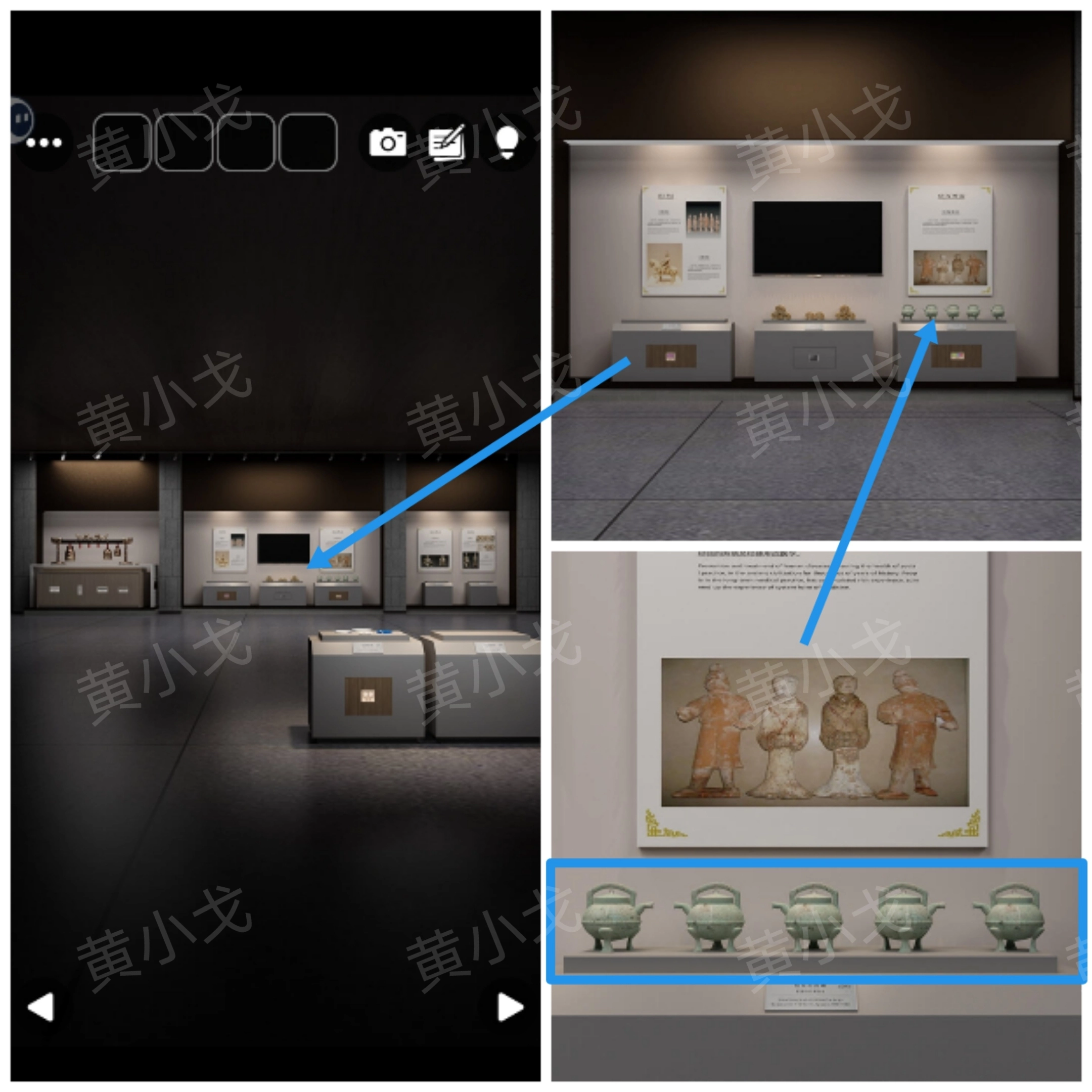 1. 点击查看后方中间展览柜右侧柜子上的陶罐,以获取线索。