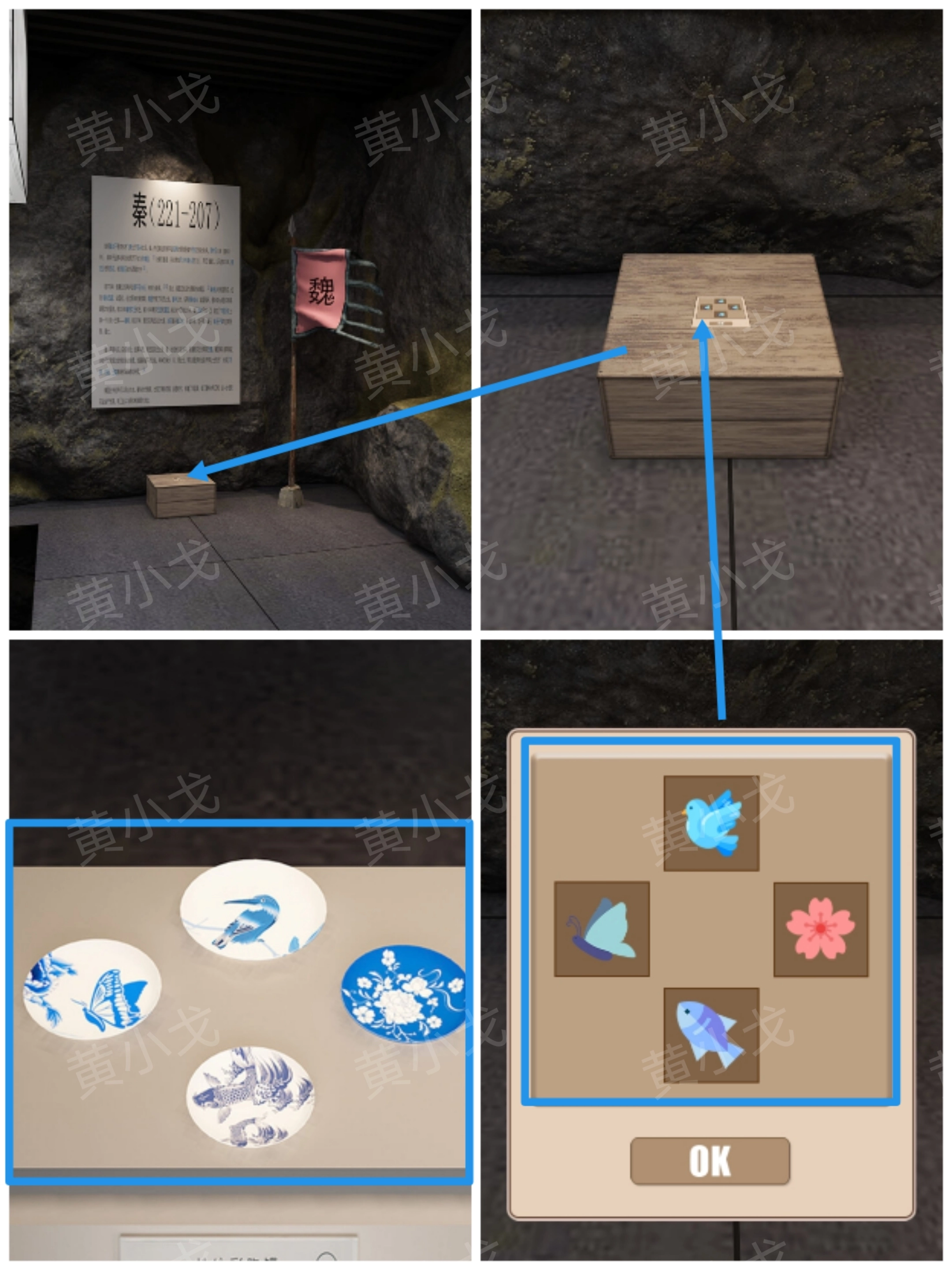 本篇为大家呈上《Escape Room:兵马俑》攻略之展览区与石壁部分。在展览区,点击查看后方中间展览柜右侧柜子上的陶罐,可获取线索:罐子口朝向为右左左右左。点击查看中间展示柜上的盘子,能得到线索:盘子的位置及上面的图案分别是左 - 蝴蝶、右 - 花、上 - 鸟、下 - 鱼。