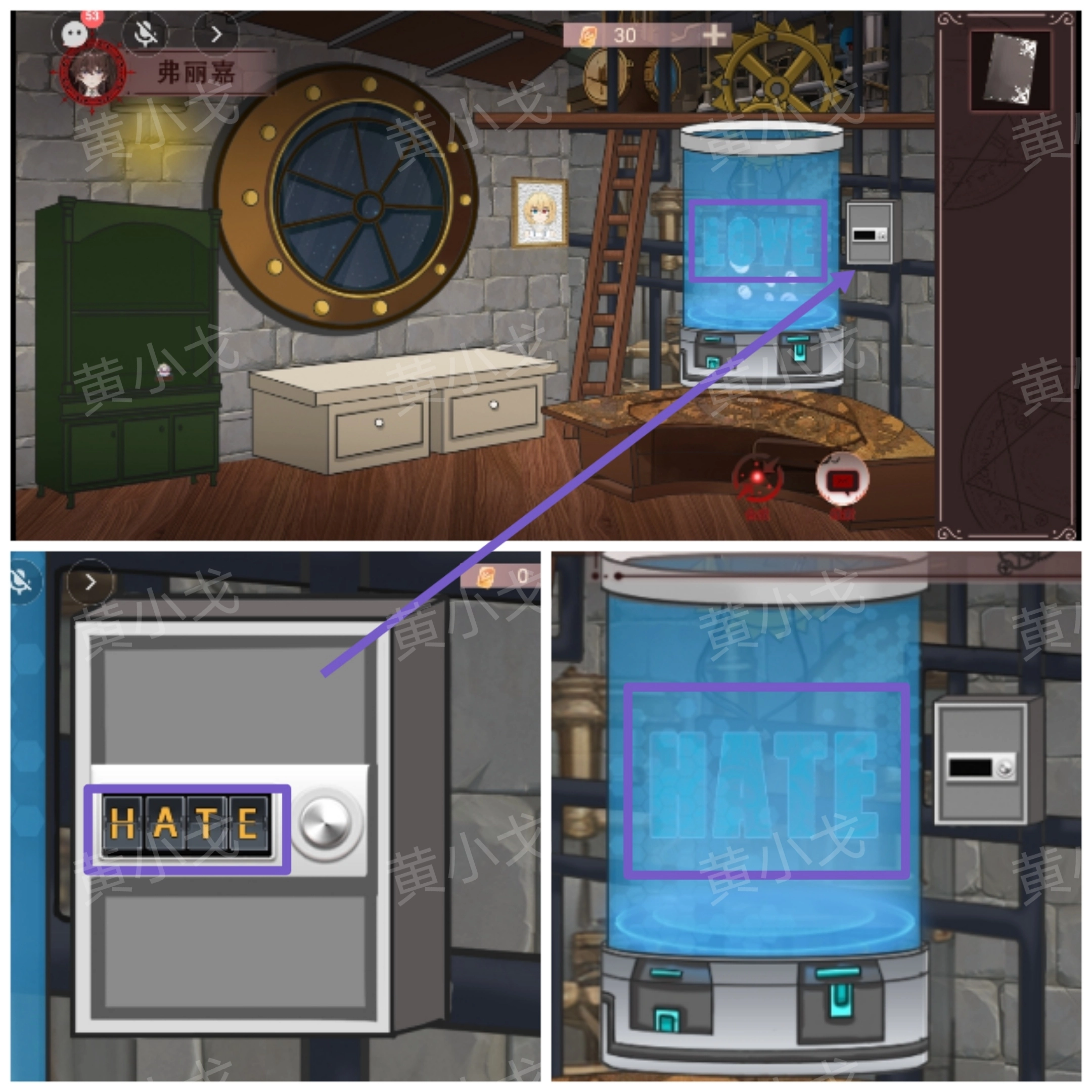 5. 轻点墙上的箱子,依据队友所在培养仓上呈现的线索,输入密码:HATE