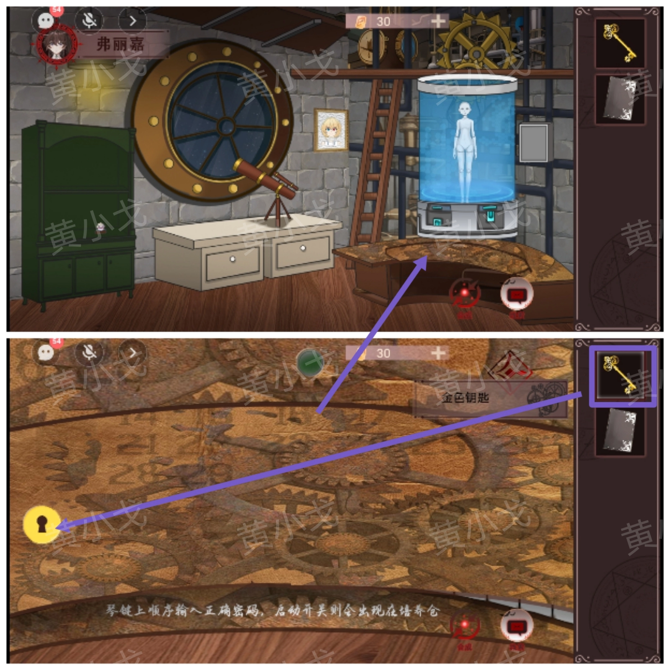 9. 轻点培养仓前方的琴,接着使用【金色钥匙】将其开启。
