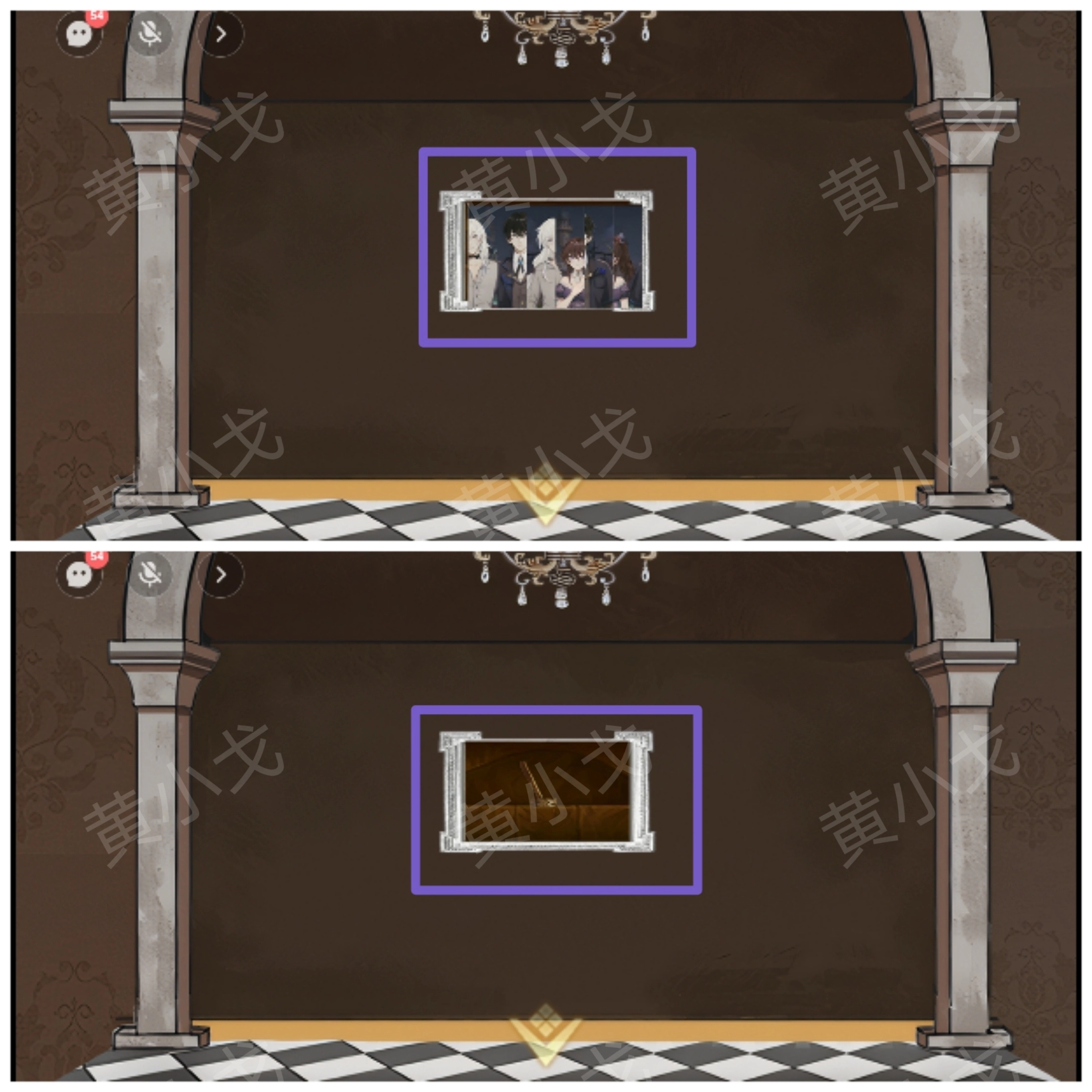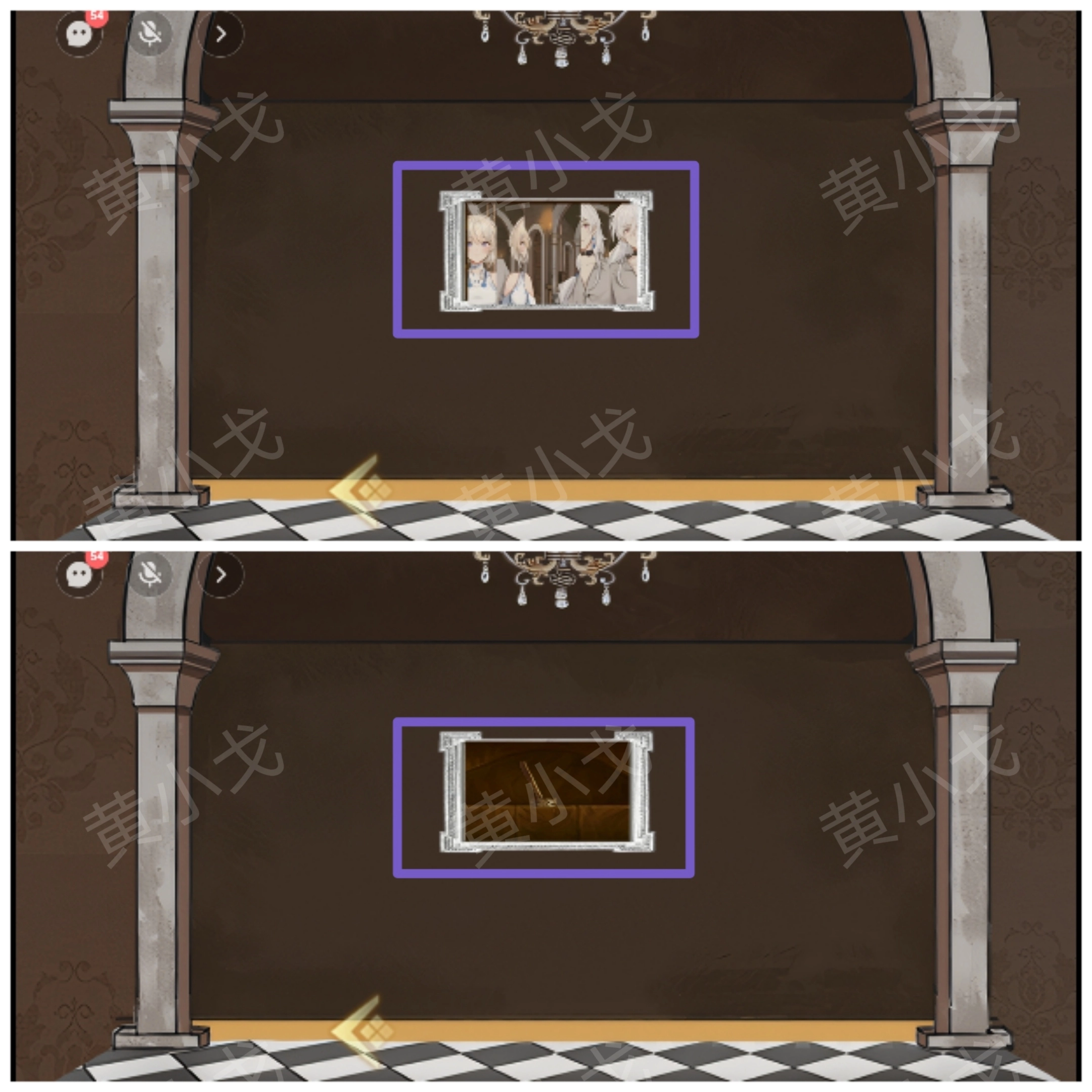2. 轻触墙上的画,待队友成功完成拼图后,拉下开关。