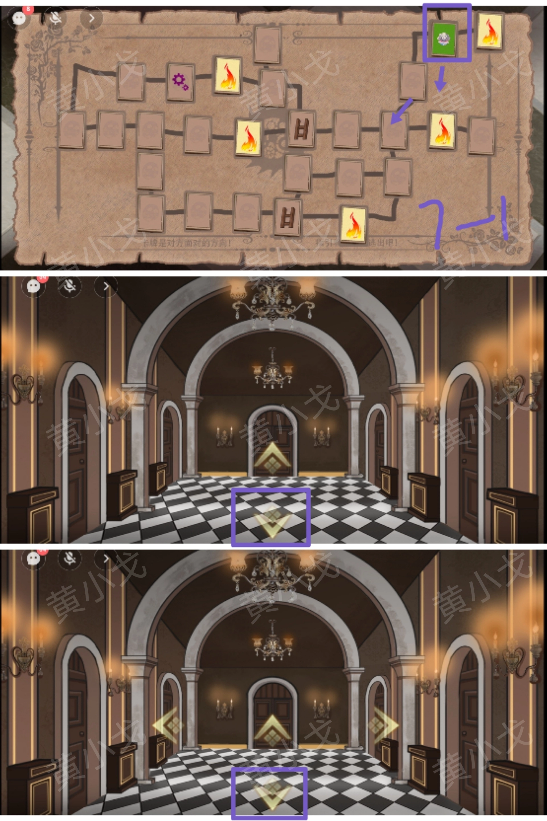 7. 依据队友的引导,挑选正确的路线,从城堡中走出去。