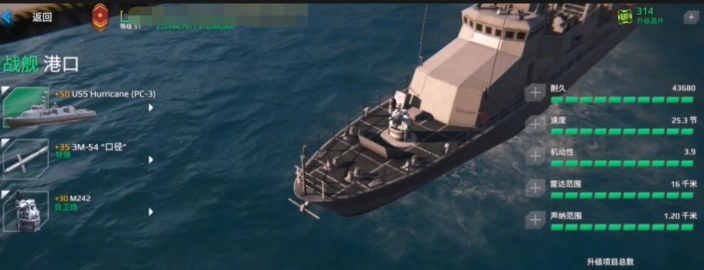 建议挑选PC3飓风号或者022型。PC3的防空槽较为精简,仅有1 - 2个,不过其射击速度相当快。在实战过程中,能够轻松锁定导弹,当遭遇飞机群时,直接抛出一枚热诱弹,接着便可撤离。若资源充裕,优先升级导弹或者主炮,防空方面则需尽快提升至蓝色品质。要是想节省金币,可选择购买二级船,或者直接跳过。这里并无强制要求,可依据实际情形决定。