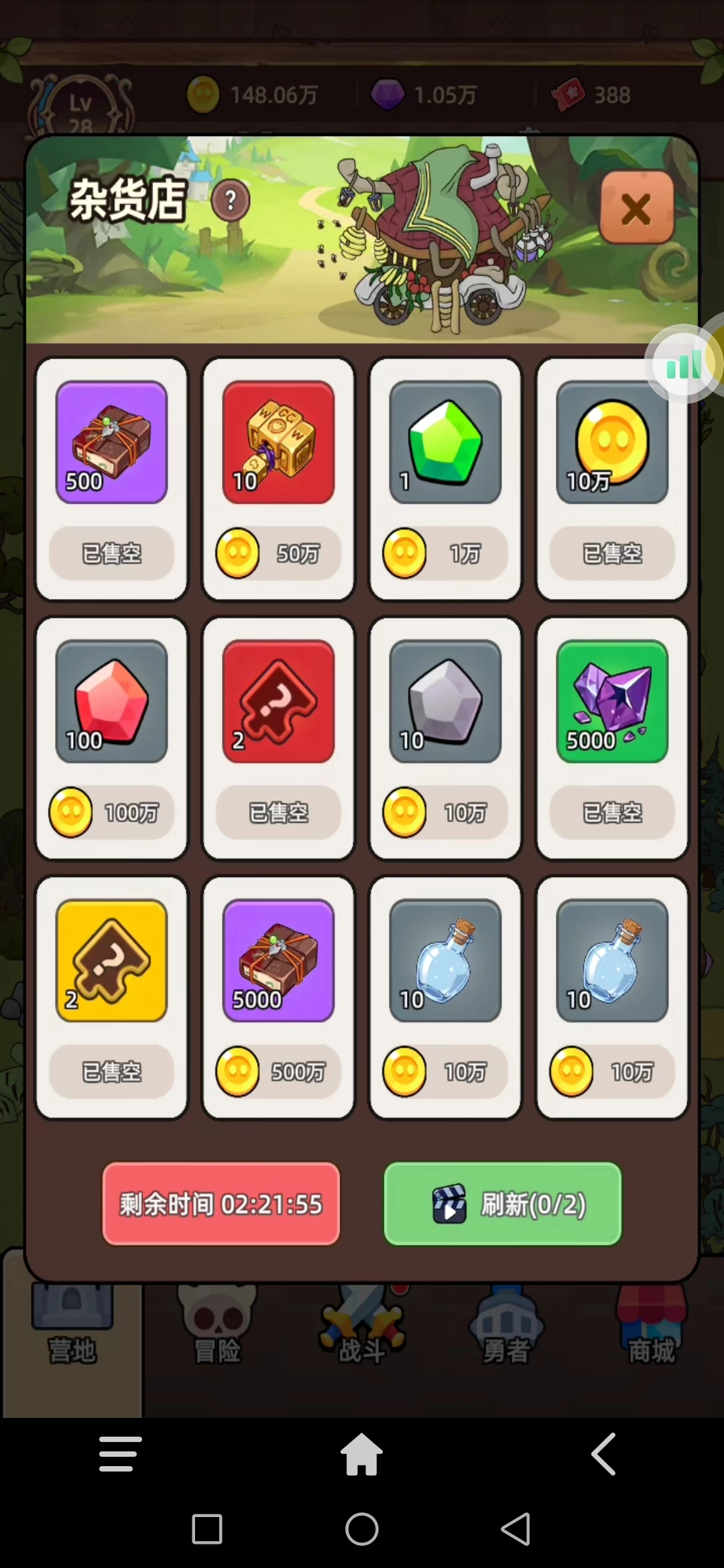 杂货店:广告的全看了,如果有突破书,自己缺的时候可以买,如果出现了营地经验包,必买。