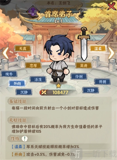 弟子具备性格、基础与天赋技能这三个属性。