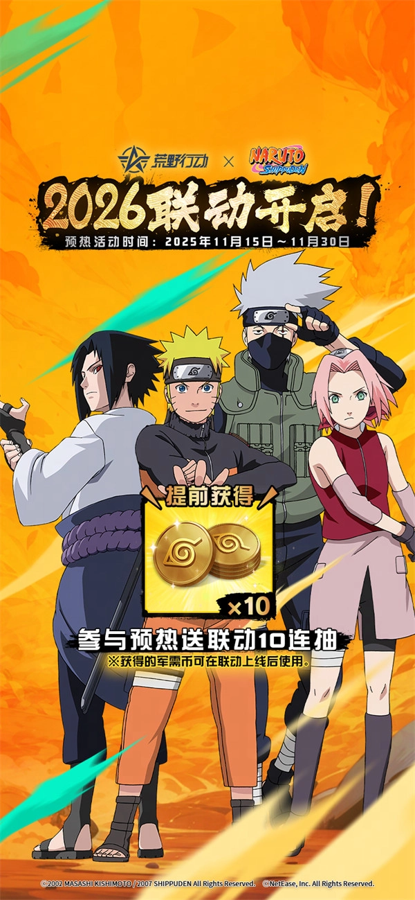 鸣人、佐助、小樱、卡卡西等角色都将登场,来自木叶隐村的忍者们,即将在荒野战场集结展开行动!