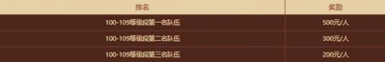 2025年11月28日至12月29日,玩家参加“109”新服试道大会,除了游戏内的常规奖励,还能额外领取“王者争锋”活动的专属奖励。活动期间,新服将分别在12月4日、12月11日、12月18日和12月25日举办四场试道大会,每场大会中100-109等级段排名第1至3名的队伍成员,都可获得现金奖励。
