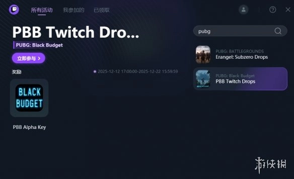 步骤三:搜索《PUBG: Black Budget》,然后点击【立即参与】按钮