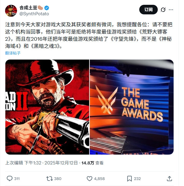 评论区里,很多玩家都在为《荒野大镖客2》惋惜,毕竟它在2018年的TGA颁奖典礼上输给了《战神4》。
