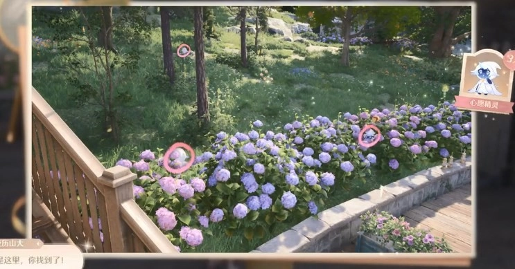 当玩家来到该地点时,NPC会要求你寻找三个精灵,这三个精灵的位置已在下图中用红圈标记出来。