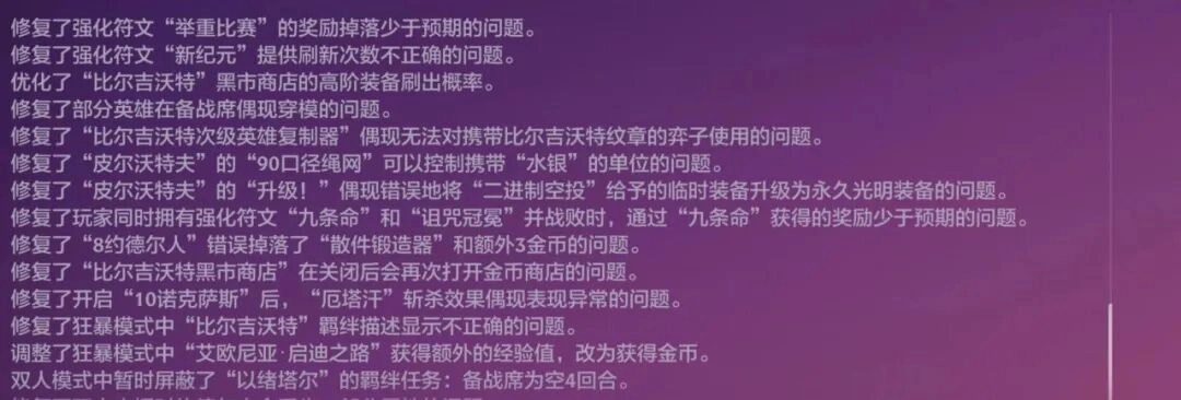 更新内容如下:二进制空投功能已被禁用;混沌召唤功能重新开放使用;虚空装备“掠食本能”已从游戏中移除。