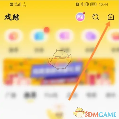 1. 第一步,打开手机中的戏鲸软件,点击界面上方的“+”图标。