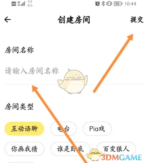 2、在相应位置输入房间名称,接着点击上方的提交选项。