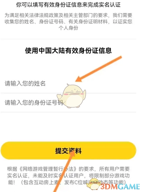 3、最后录入身份信息,点击下方的提交资料选项即可。