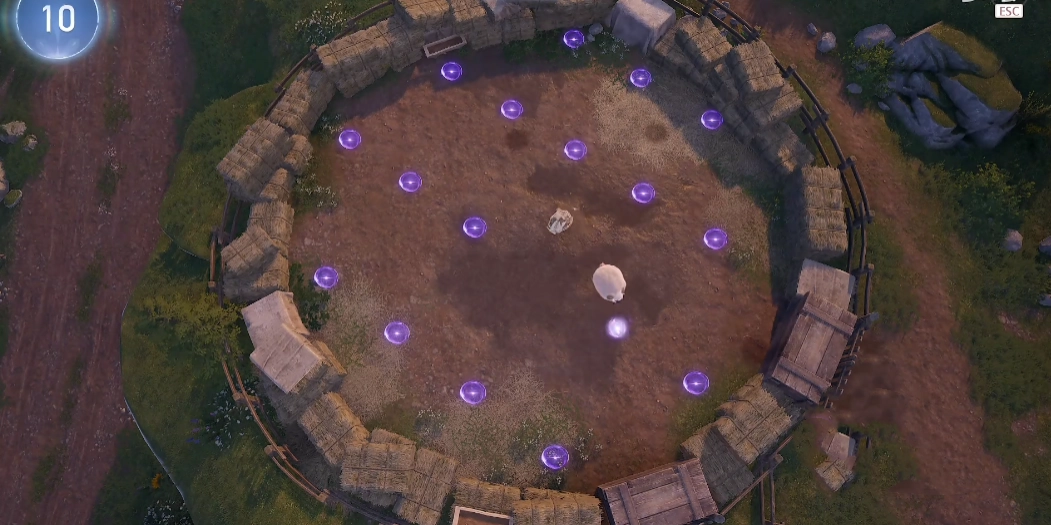 若想玩好“花匠绵羊”,解锁游戏是必经之路。玩家需前往小石树田村,找到村中的NPC卡尔霍恩并与之对话,方能开启游戏入口。这款小游戏的玩法颇为直白:在1分5秒的时限内,你得引导羊吃掉羊圈内特定数量的紫色光珠。乍一听似乎不难,然而实际操作起来,情况就大不一样了。羊圈上布满了珠子,可羊却仅有一只。