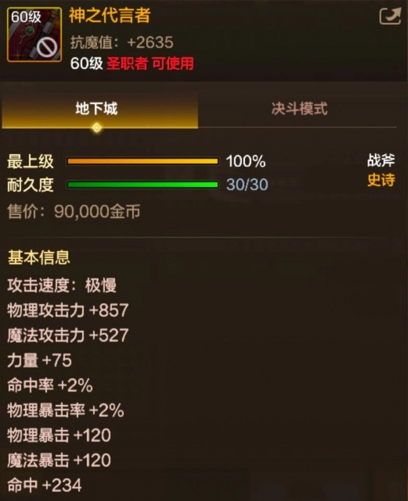 《地下城与勇士:起源》里,神之代言者是圣职者职业60级的史诗战斧。它不仅自带暴击属性,还有高额暴击伤害加成,而且攻击时有一定概率进入霸体状态。下面,就一同来了解下神之代言者的属性与效果吧。