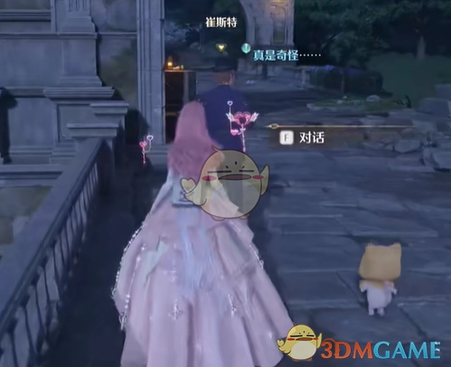 2、到达目的地后,朝着东南方向行进,走过桥后继续径直前行,在城门口处寻找到NPC崔斯特,并与他进行对话。
