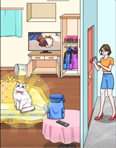 4、开启衣柜,把猫交给她。然后将衣柜上的发卡给女人戴上,女人会变成猫,最后把变猫后的女人交给相关对象,这样就能通关。