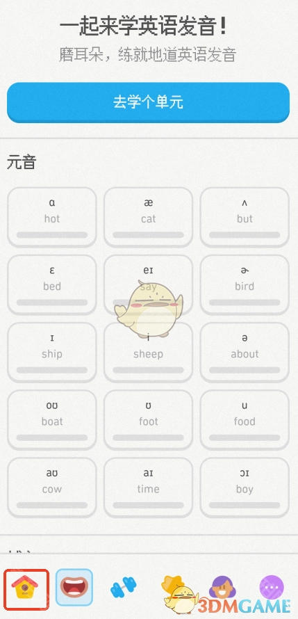 1. 开启多邻国app,把页面切换至左下方标有房子图案的界面。