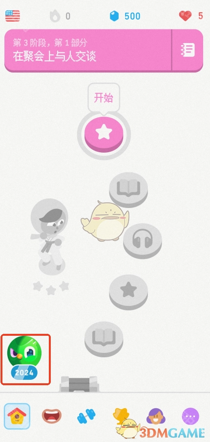2、在此界面左下方,有一个多邻国2024的图标,点击该图标即可进入。