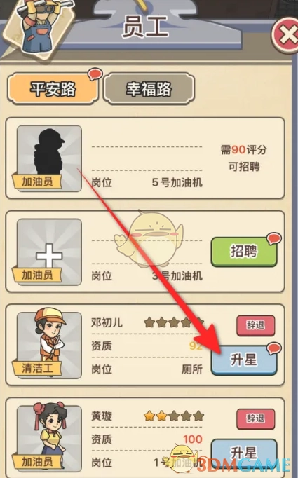 在平安加油站游戏里,所雇佣的员工都各负其责。到了后期,能够通过提升员工星级来增加收益,而升星则需要用到升星徽章。不过,有些小伙伴还不清楚加油站员工该如何进行升星操作。别担心,下面小编整理了《平安加油站》员工升星方法介绍,大家一起来看看吧。