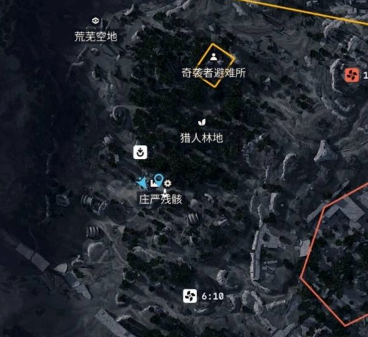 在那片荒芜的空地上,地图上显示当前人物所在位置有一个白色的关节