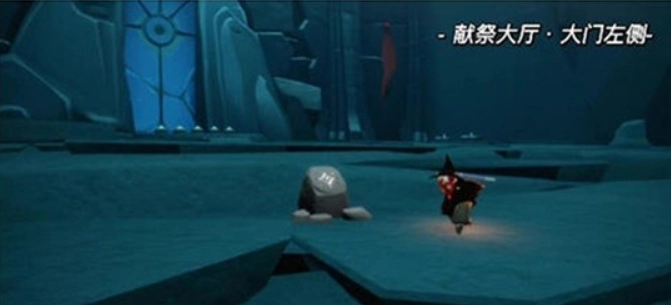 光遇里暴风眼伊甸的第一个神坛在献祭大厅的中央位置。当玩家进入献祭大厅后,把视角转向左边的大门,就能在大门旁边看到这个神坛。它的位置很容易被注意到,玩家在进行献祭的过程中能够很轻松地找到它。