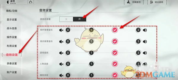 3、进入音效设置页面并开启相关功能,之后就能自由对游戏音效进行设置。